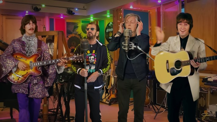 I wish we had stopped Jackson then and there. As my good friend Danielle joked, this was a trial balloon. People praised Jackson for doing this to Lindsay-Hogg’s footage in the name of restoration, and it emboldened him to do worse things. Before the True Lies debacle, the most recent example of this was the aggressively saccharine and confusing Now & Then, a long unfinished demo now finished by Ringo and Paul, edited together with archival footage of younger John and George composited in an a fashion that can be charitably described as tremendously weird.