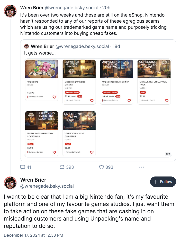 That's some mobile gaming-type bullshit. Surely Nintendo--with the company's history of quality control and video game litigiousness--would not allow such a thing? Like, if Super Mario Galaxy's shop listing was immediately followed by an AI-generated thumbnail for Super Mario Galaxy: New Chapters, someone would end up either bankrupted or strangled and stuffed in the back of a black Toyota Crown.