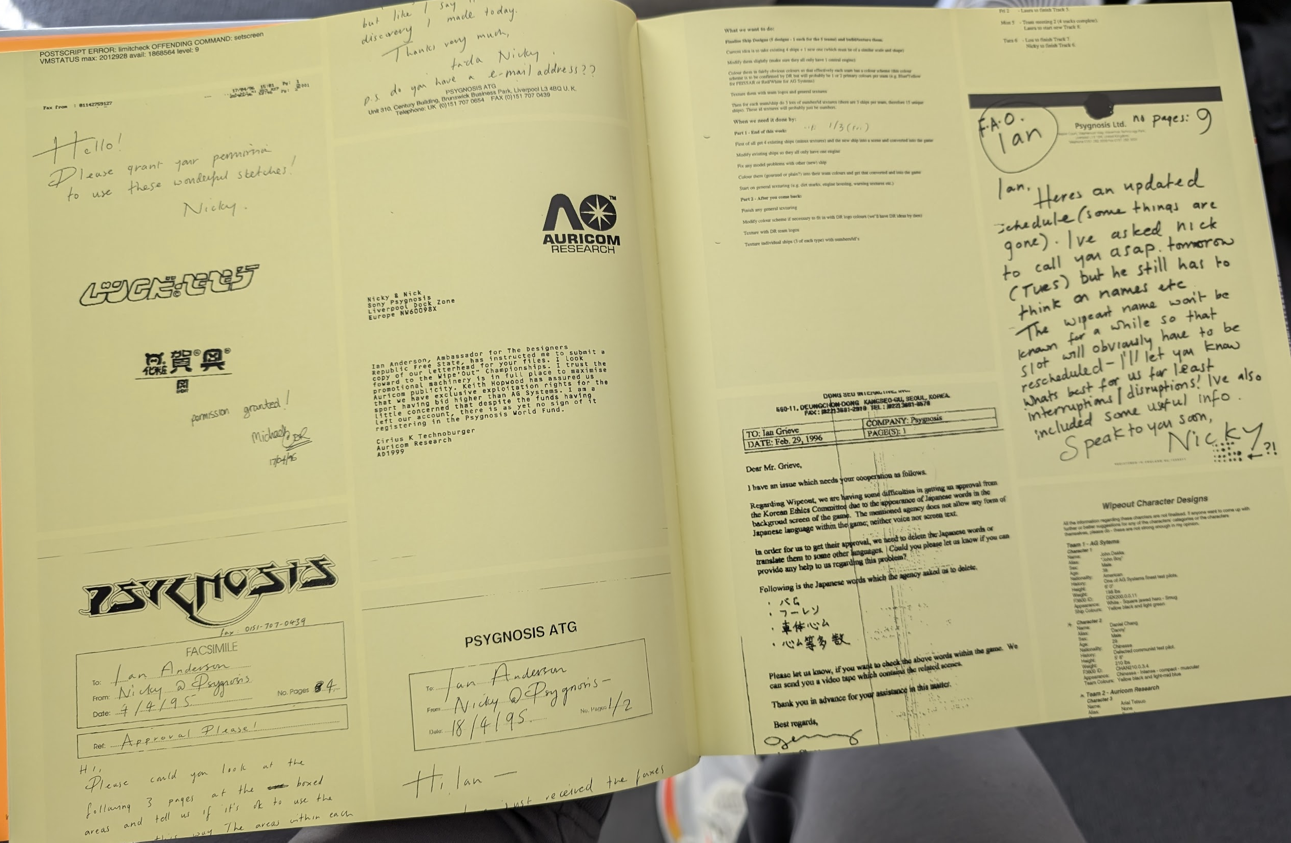 It's so much more than just an art book, though. In addition to all the logos and storyboards there's a ton of genuine history behind the series, not just told by those who were there, but shown to us in the form of letters, faxes and scribbled notes detailing the creative process behind the game's creation, Designer Republic's involvement and even the process of putting WipeOut's famous soundtrack together.