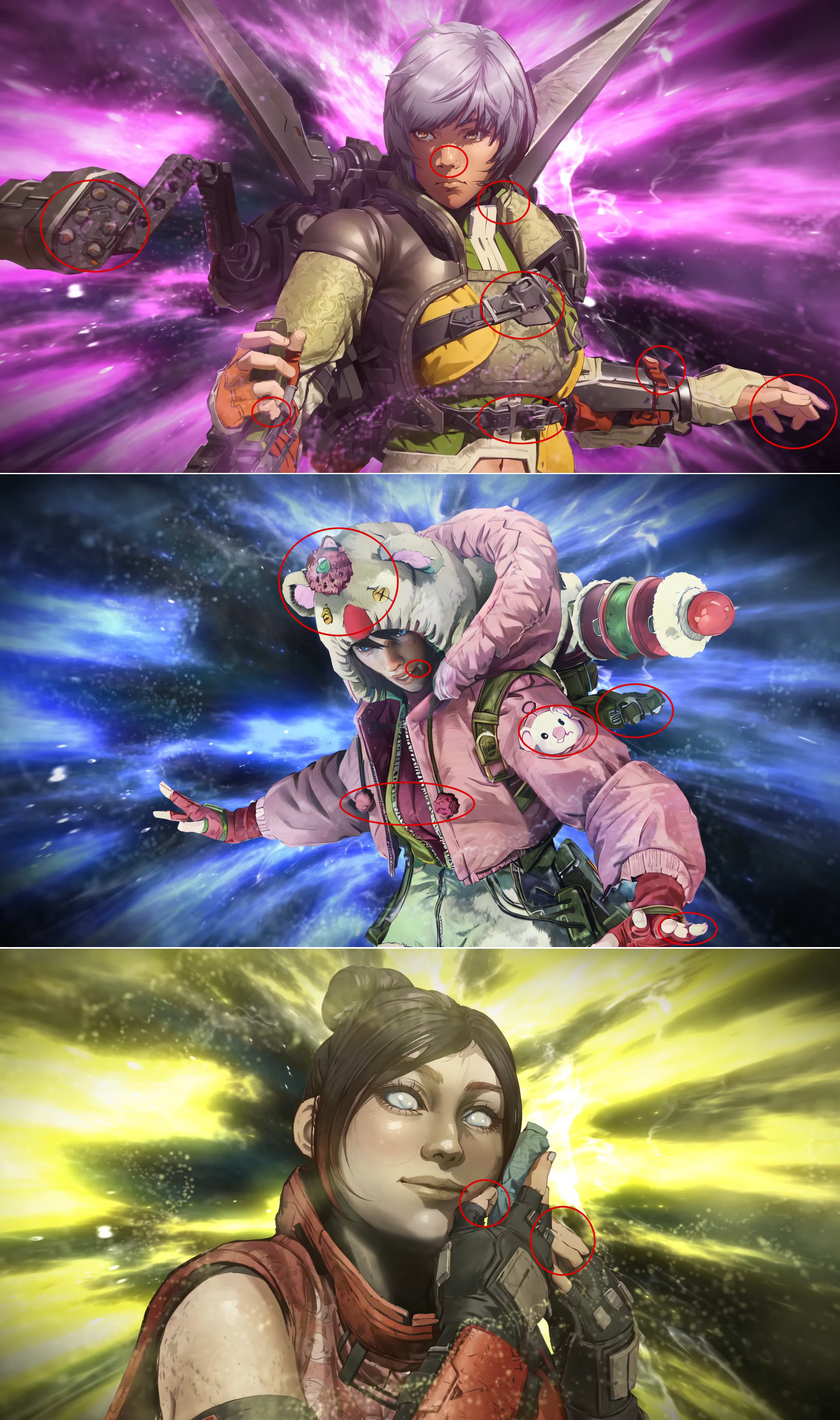 Not to be outdone, Wizards aren't the only company to be caught using machine-generated imagery over the last few days. Electronic Arts, publishers of Apex Legends and a company that made over $7 billion last year, recently released a trailer for a Final Fantasy collab with their online shooter, and the character art used in that trailer was quickly found to have clear traces of at least parts that had been casserole'd together by a computer:
